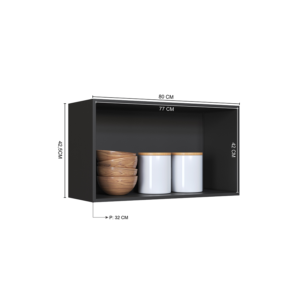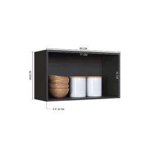 Armário de 0.80 cm 1 Porta Basculante Dimensões: – Largura: 80 cm – Altura: 45.2 cm – Profundidade: 32 cm